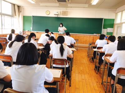 進路学習の一環として、1学年では夏休み中に「職業人へのインタビュー」を行いました。今日は、各自でインタビューしてきたことをクラスで発表会を行い、職業について学び、働くことについて考えることができました。「高校生へのアドバイス」として、多くの生徒が「今しかできないこと、たくさんのことに挑戦することが大切」という言葉をもらっていたようです。2学期がスタートします!!  たくさんのことに挑戦しよう!!