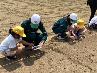 本校の課題研究調査研究班は、球磨工業の生徒さん、須恵小学校の児童の皆さん、須恵保育園の園児の皆さん、つつじヶ丘学園の方々と和綿の種まきを行いました。近年、注目を集めている「和綿」です。初めての参加でしたが、皆さんに教えていただきながら、児童の皆さんと一緒に楽しく種まきができました。
