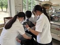 これまでは、動画視聴のみで授業を進めてきましたが、状況を考え、十分な感染予防を行った上での実習です。