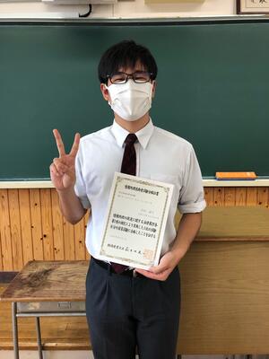情報処理科3年(3-4)の石田遥人くんが 6月、基本情報技術者試験に合格し