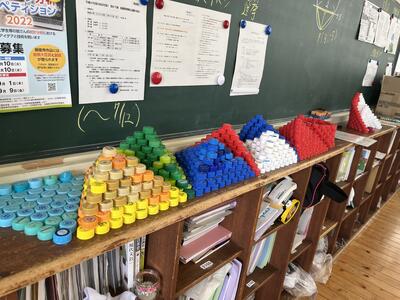 クラスマッチ形式でペットボトルキャップの回収に力を入れることを思いつきました。