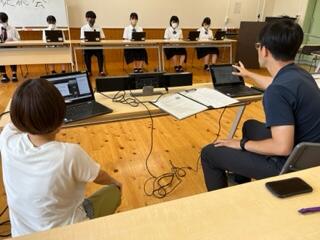 普段は、授業を担当する先生は球磨中央高校から授業を配信するのですが、26日(月)は先生が牛深高校へ出向き、牛深高校から授業を配信する形で実施されました。