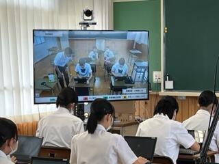 2年1組のGLS(グローカル・スタディーズ)の授業は週2時間ありますが、そのうち月曜2限の授業は牛深高校へ授業を配信し、牛深高校でGLSを選択した3年生4名と一緒に授業を行っています。