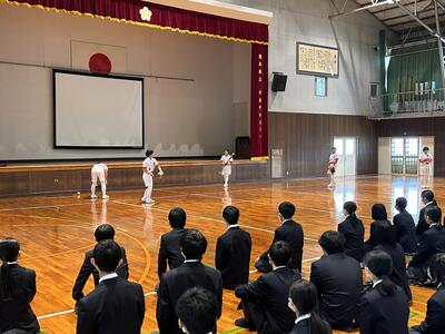 4/9(火)に対面式・部活動紹介を行いました。対面式では、新入生と在校生が初めて対面し、在校生より生徒会長が歓迎の言葉を、新入生がこれからの思いを述べてくれました。新入生の皆さん、これから球磨中央高校を作り上げていく一人として、ともに頑張りましょう。
