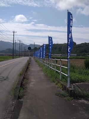 9月20日(水)、生徒が球磨中央百貨店ののぼりを、正門~国道にかけてのガードレールに掲げました。いよいよ開催まで1か月。店長・課長会議が毎週開かれ、翌日にはクラス全員に対してその報告が行われます。本日22日は、生徒が事業所等にポスター掲示の依頼に行くときの礼儀や、お願いをするときの言葉遣いなどについての説明会があります。生徒が考えたチラシの発表会もあります。百貨店への取組が加速してきました。