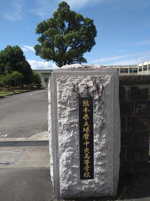 学校の見回りの時、ちょっと正門を出てみました。球磨中央百貨店ののぼりが見事に並んでいました。目の前には、稲が刈り取られたあとの田んぼとまだ稲穂が残っている田んぼが広がっています。遠くに見える美しい山々、白い雲と青い空、鮮やかな赤の彼岸花が自然のハーモニーをつくり上げています。国道は多くの自動車が走っていますが、学校の周辺は大変静かです。7年前に正門に取り付けられた「熊本県立球磨中央高等学校」のプレートがきらりと輝いています。以前は正門前と道路との間に段差がありましたが、現在はきれいに整備され、スムースに校門を出入りすることができます。正門から校内に入ると、校内のさ緑が来校された方々を迎えます。暑い中、学校技師の方が整備されていました。10月21日・22日、多くの方にこの正門をくぐってほしいものです。