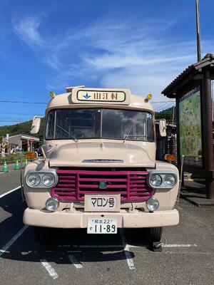 そして一番のお目当ては、レトロなボンネットバス、マロン号です。8月に山江村を訪れた時は車庫の中に入っていてので窓越しにしか見ることができませんでしたが、やっと会うことができました。感激です。地域の方々のおもてなしに感謝しながら、そのあと、相良村川辺川の清流へ。歩いて橋を渡り右岸に向かうと、緑色の稲穂と彼岸花の何と美しいことか。川辺川で鮎釣りをしている人を見かけました。夜は青井阿蘇神社、ライトアップされてさらに神々しさを増していました。おくんち祭ももうすぐですね。