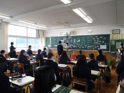 本日、生徒指導主事の戸塚先生に「3年生の学校生活を充実させるために」のタイトルで講演をしていただきました。3年生の0学期といわれる3学期にしっかり3年生としての意識と目標をもってもらい進路実現のため多くのことを話していただきました。