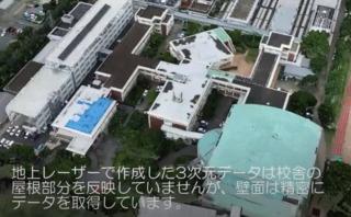 地上レーザーで作成した3次元データは校舎の屋根部分を反映していませんが、壁面は精密にデータを取得しています。これにUAVで作成した3次元データを重ねて3Dモデルを制作しています。