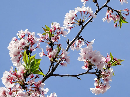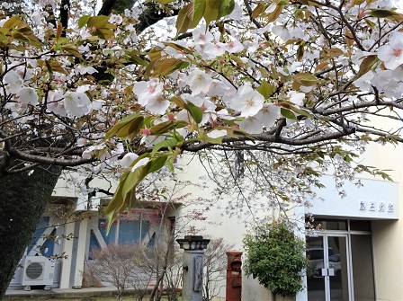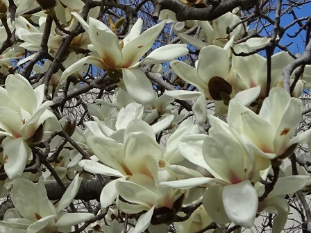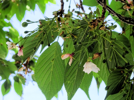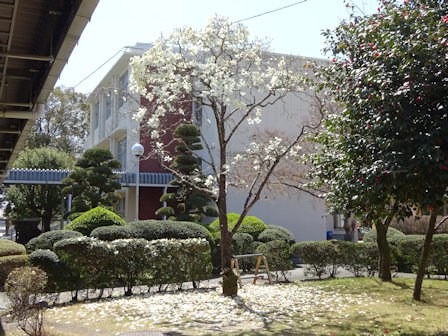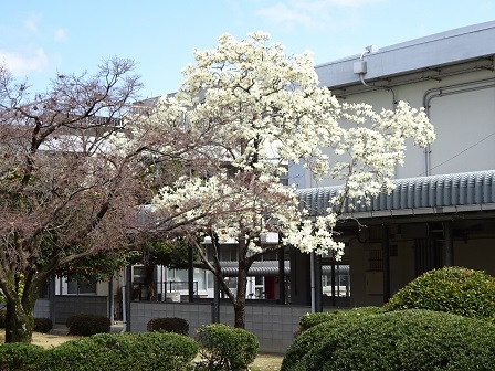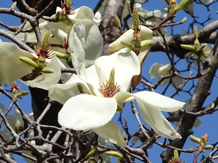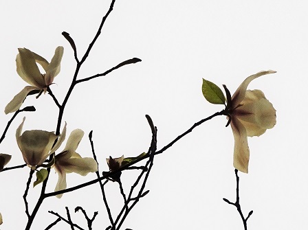 ハクモクレンの花と似ていますが、コブシの花には葉が一枚付いています。