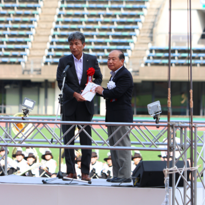 8月12日(土)16:30より、えがお健康スタジアムで開催されました「第50回くまもとマーチングフェスティバル」開会式において、