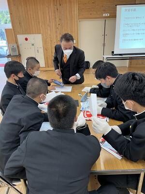 日本の基幹産業の一つである機械加工及び金属熱処理の出前講座を行いました。機械科、材料技術科の1年生が講座を受け、金属の性質、熱処理の面白さ、仕事のやりがい、就職先など、実技も含めながら将来に役立つ多くの内容を学びました。また、国家資格の技能検定との関連性も学び、日頃からの学びを深化させることができました。今回、大阪から西部金属熱処理工業協同組合魅力向上委員会の5名の方々が来校されました。遠いところ熊工のために来ていただきありがとうございました。来年も是非よろしくお願いいたします。
