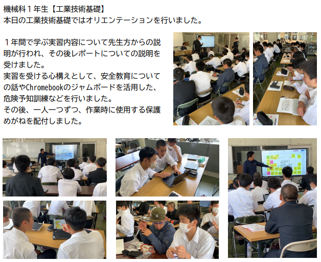 今年度進路目標を達成した機械科の3年生が1,2年生向けに進路目標を達成させるためのノウハウを話してくれました。1,2年生の皆さんもこの貴重な話の内容を有効に活用して、自分の進路目標達成に向け頑張ってください。