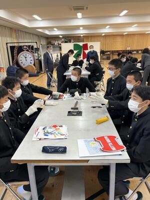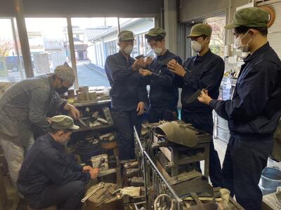 機械科課題研究(鍛造班)の3年生が、川尻にあるくまもと工芸会館で刃物づくり体験を行いました。職人の方からの丁寧な御指導により立派な包丁を製作し、日本の伝統技術を体験することができました。この貴重な経験を今後の生活に活かしてください。くまもと工芸会館の方々に心から感謝申し上げます。