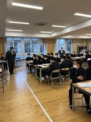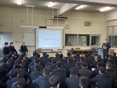 3年生の登校日に機械科の同窓会である機友会の入会式を行いました。同窓会会長である、九州産交オートサービス㈱代表取締役社長の梅木博文様より、社会人としての心構え等、貴重なお話をいただきました。3年生の皆さん、卒業後も熊工機械科の卒業生として誇りを持ち全国、世界で活躍してください。