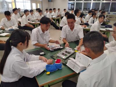 電子科2年生は1月に工場見学(くまさんメディクス様、三菱電機パワーデバイス製作所様)、その後2回目の出前授業を実施します。半導体についての学びを深め、進路選択の一助としてもらいたいと思います。