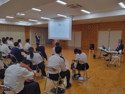電子科2年生の他、工業化学科の2年生、情報システム科の1年生が聴きました。