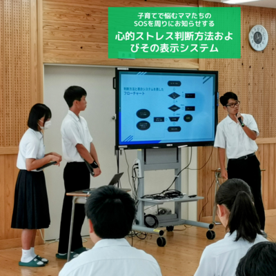 社会課題解決型の課題研究に取り組んできた3年生が、オブザーバーとしてイデアITカレッジ阿蘇の副校長である鈴木俊良先生と、熊本県産業技術センターのメカトロニクス・制御担当である道野隆二先生にお越しいただき、1・2年生に向けて成果を発表しました。鈴木先生には課題研究をより良いものとするための出前授業を、道野先生からは企業のご紹介等のご支援を頂いております。