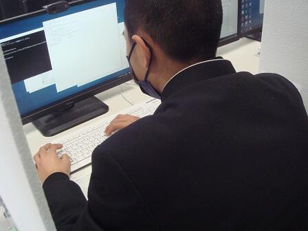 1年生の授業「プログラミング技術」では、コンピュータとの対話を通じて、基本的な論理思考や操作に挑戦しています。