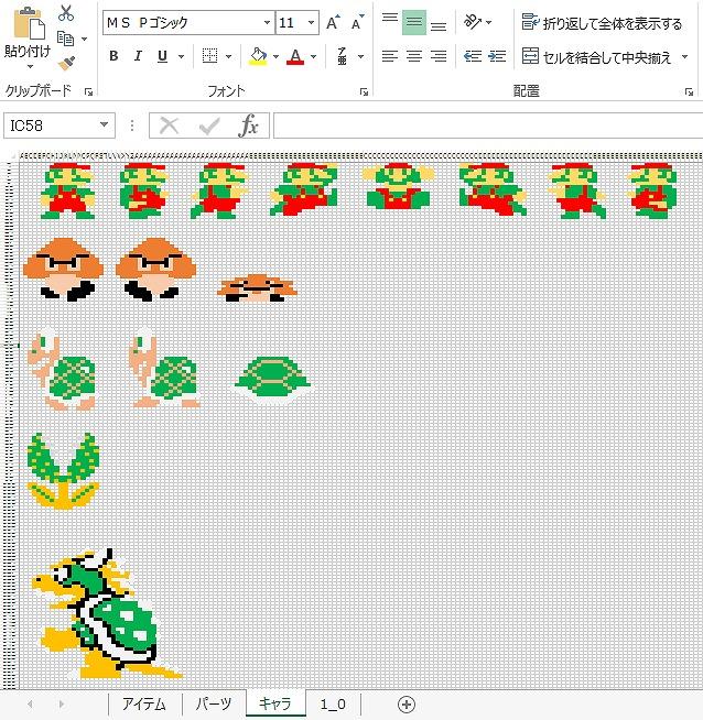 windows Excelでキャラ等を作成しました。次は動画作成に挑戦したいと思います。