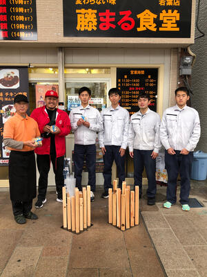課題研究(地域連携班)では、健軍商店街と連携した取り組みを行っています。本日(19日)、製作した作品の寄贈式を行いました。[傘立て2台、木製コースター21枚]寄贈させていただいたものは、健軍商店街にある、藤まる食堂 様、ちょい呑み益城屋 様をはじめとした、健軍商店街内にあります。お近くを訪れる際はぜひご覧ください!