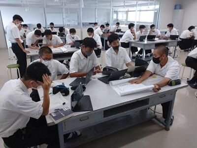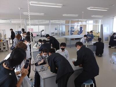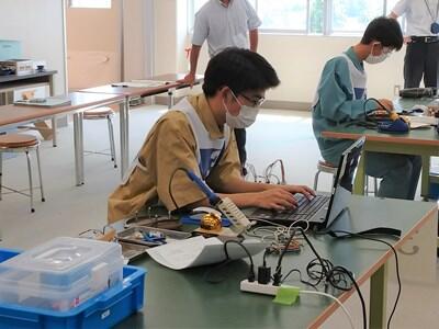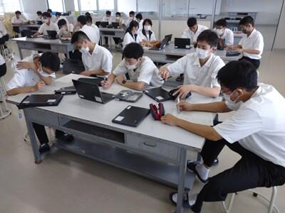 電子科2年生のほか、電気科や情報システム科、さらにリモートで機械科、工業化学科の生徒が参加しました。