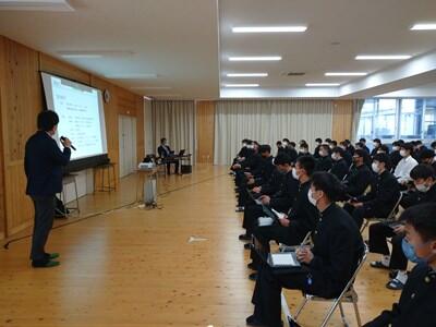 「わが国のエネルギー情勢と九州電力のカーボンニュートラル実現に向けた取り組み」と題して、2年生に講義・ワークショップを実施して頂きました。