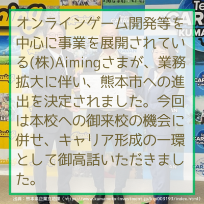 オブザーバーとして、熊本県教育庁高校教育課で企業連携コーディネーターの藤原様にもお越しいただき、講評・助言を頂きました。