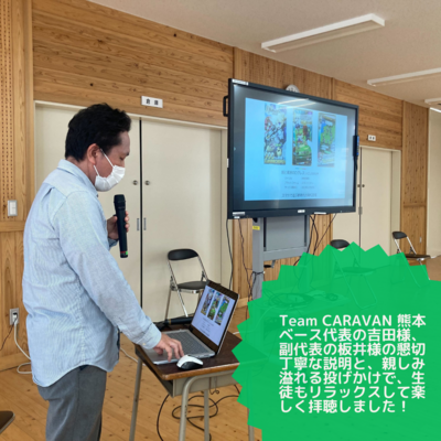 社会課題解決型の課題研究に取り組んできた3年生が、オブザーバーとしてイデアITカレッジ阿蘇の副校長である鈴木俊良先生と、熊本県産業技術センターのメカトロニクス・制御担当である道野隆二先生にお越しいただき、1・2年生に向けて成果を発表しました。鈴木先生には課題研究をより良いものとするための出前授業を、道野先生からは企業のご紹介等のご支援を頂いております。
