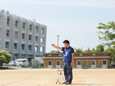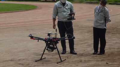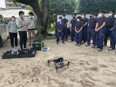 (株)ワコー様に来校していただき、UAV写真測量を行いました。UAVは無人航空機(ドローン)のことです。