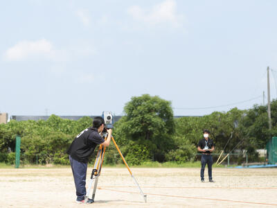 連携内容:路線測量・縦横断測量実習(TS測量・水準測量)(本校内)