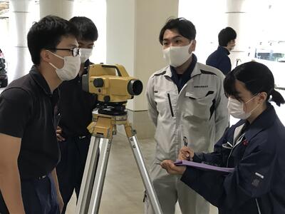 毎年熊本県測量設計コンサルタンツ協会へ依頼を行い、3年生の課題研究(コンサルタント班)で訪問実習をしていただき、測量技術の習得・最新測量技術の紹介をしていただいています。