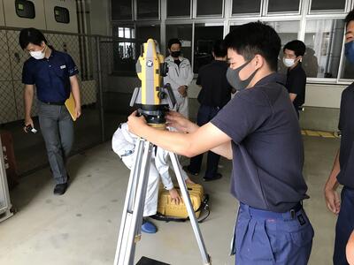 コンサルタント班 企業連携②(路線測量・縦横断測量実習(TS測量・水準測量))(本校内)