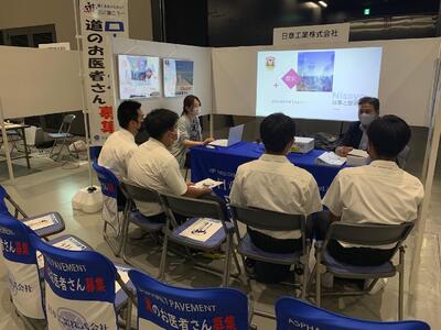 これから就職活動を行う3年生やインターンシップ前の2年生は企業の方々の会社の概要や土木技術の説明を真剣に聞いていました。
