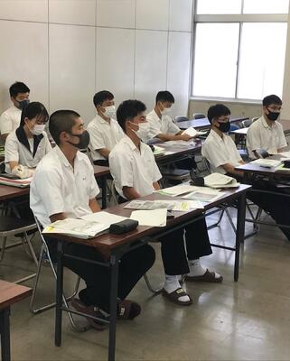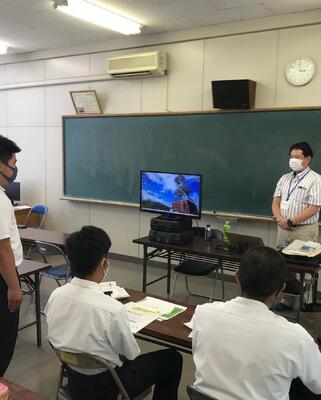 土木科1年生を対象に卒業生による進路講話を行いました。入学後、専門教科の授業や実習を通して、興味関心が高まり、将来の進路を具体的に考える時間を持てるように県内企業で活躍されている卒業生に講話をお願いしました。