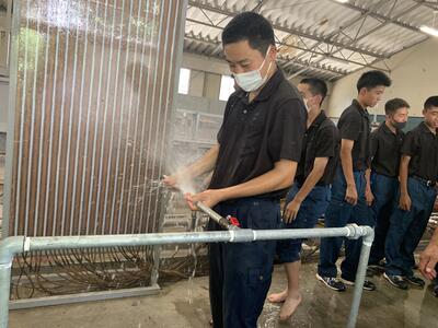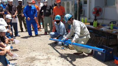 止水実習では、管から水が勢いよく出ており、止水時に水を浴びるため、楽しく実習を行うことができました。