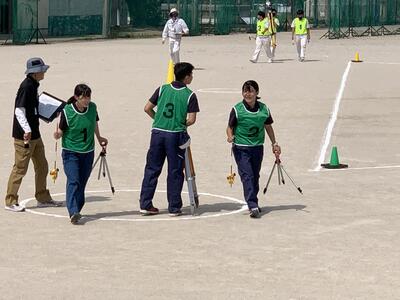 今年度は玉名工業グラウンドで総距離150mの5角形を測量しました。測量競技は3人の力を合わせて行う競技です。毎日朝練習や放課後の練習を通して、練習を繰り返してきました。本番では外業、内業共に無事に終えることができ、みごとに金賞を受賞することができました。
