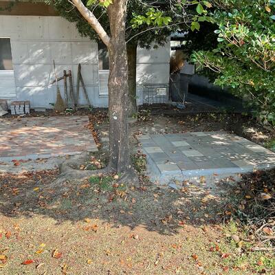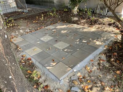 スコップで土を掘り、下地を引き、インターロッキングを敷き並べていきました。