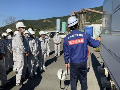 国土交通省九州地方整備局の仕事について、熊本新港のお話など講義していただき、ケーソン制作現場見学を見学しました。
