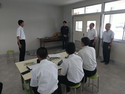 熊本県電気工事業工業組合から4人が来校され、ケーブル8巻を寄贈していただきました。本当に貴重なものをいただき大変感謝しております。また、㈱エレテックと中川電設㈱で活躍する2人の先輩たちが、笑顔で楽しく働いている様子も見ることができました。生徒たちが一生ものの国家資格を確実に取得できるように、実習・課外で大切に使わせていただきます。