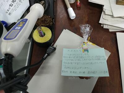 入社して半年経った卒業生が遊びに来ました。部活動の後輩たちに激励の品を持って来たようです。研修期間中の様子や電験3種に合格したことなど、充実した生活を送っていることが分かってよかったです。12月の年末や5月の電気会総会でまた会えることを楽しみにしています!