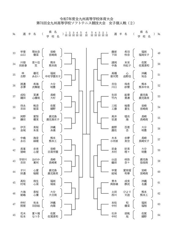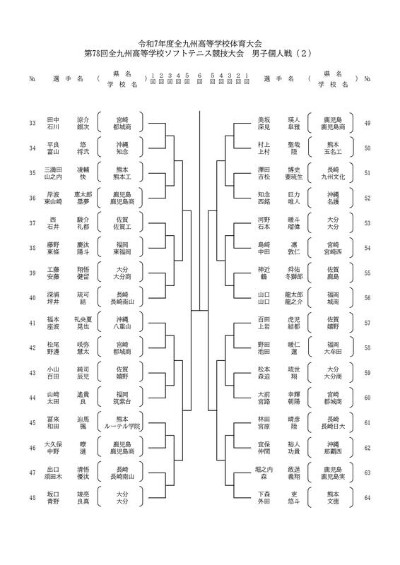 個人戦 大川・横田 2回戦敗退(2-4鹿児島商業)
