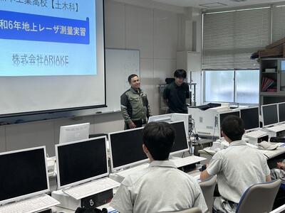 (株)ARIAKEより3名の技術者に来校していただき、地上レーザー測量実習をしていただきました。