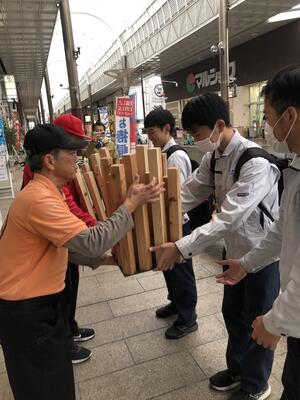 課題研究(地域連携班)では、健軍商店街と連携した取り組みを行っています。本日(19日)、製作した作品の寄贈式を行いました。[傘立て2台、木製コースター21枚]寄贈させていただいたものは、健軍商店街にある、藤まる食堂 様、ちょい呑み益城屋 様をはじめとした、健軍商店街内にあります。お近くを訪れる際はぜひご覧ください!