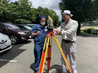 トータルステーションは自動視準機能がついており、ボタンを押すと自動回転を行うもので、生徒は初めて触れる器械に驚いている様子でした。