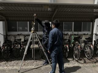 校内測量班は基準点測量を行いました。トータルステーションを使用し、校内2路線を測量しました。水野コンサルタント様から5名の講師に来ていただきました(5名:本校土木科卒業生)