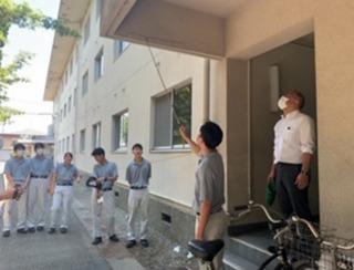 12:00~13:00 建築物の劣化(剥離、爆裂など)視察 (熊工寮)