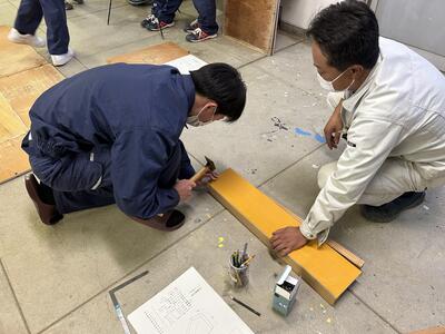熊友会型枠協同組合3名の技術者(本校建築科卒)の方に来校いただき、ご指導していただきました。