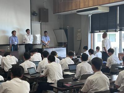 2年生課題研究で国土交通省熊本河川国道事務所から3名の本校OBの職員の方々から講話をしていただきました。