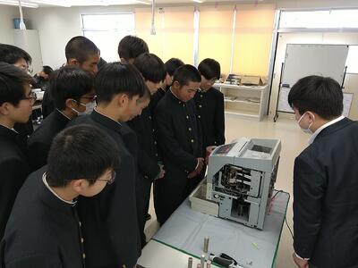 東芝エレベータ㈱から、東京都府中市と九州支社に所属する卒業生含む9人の方が来校されました。企業概要や業務の説明を丁寧にしていただき、皆真剣に話を聞いていました。VRによる据付工事体験やエレベータの電動模型製作など、とても貴重な時間を過ごすことができました!